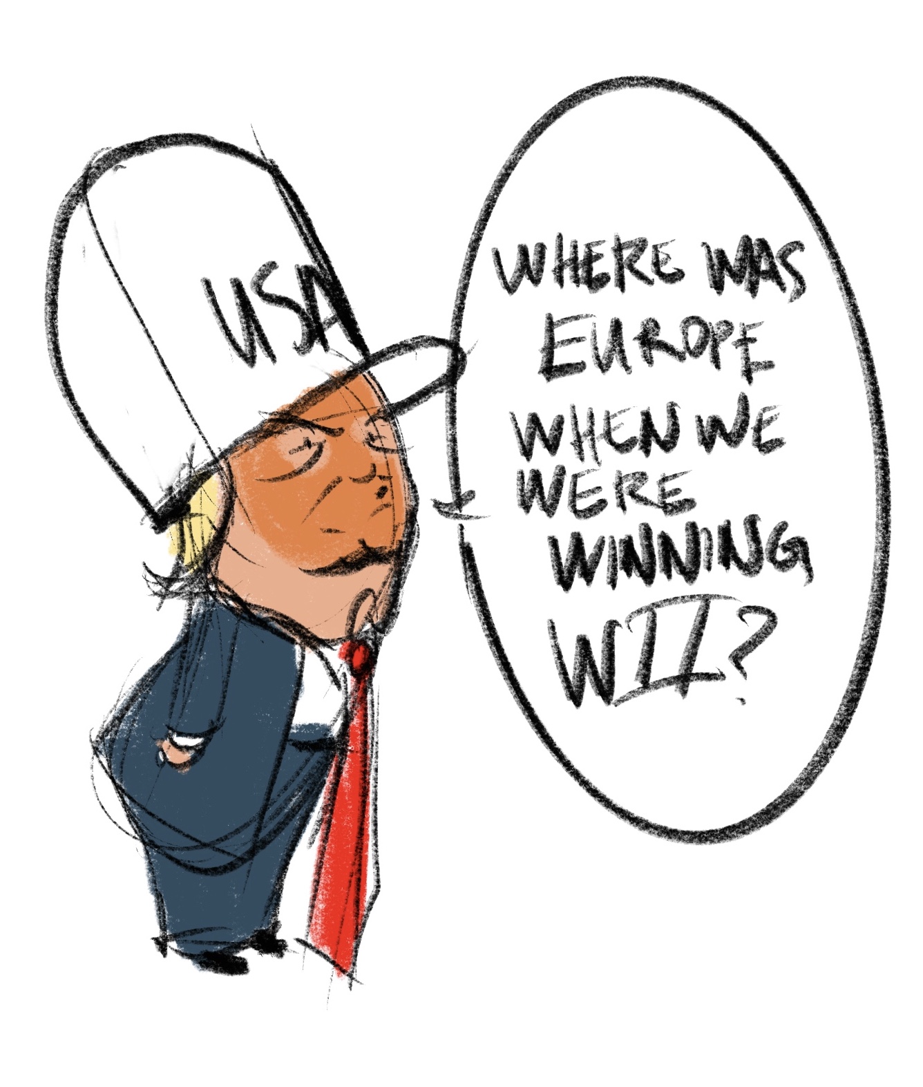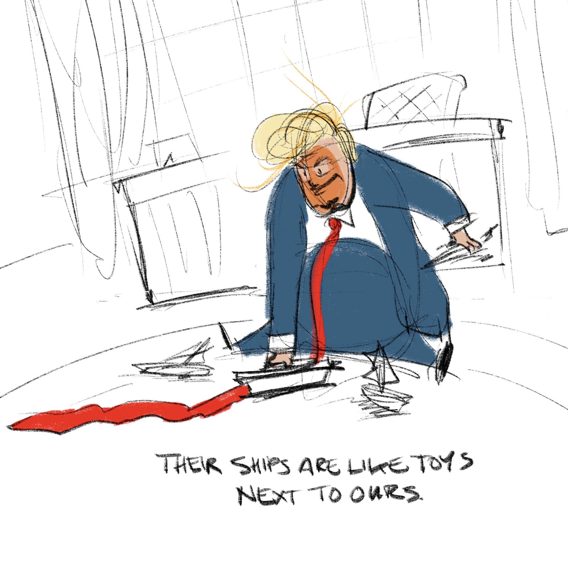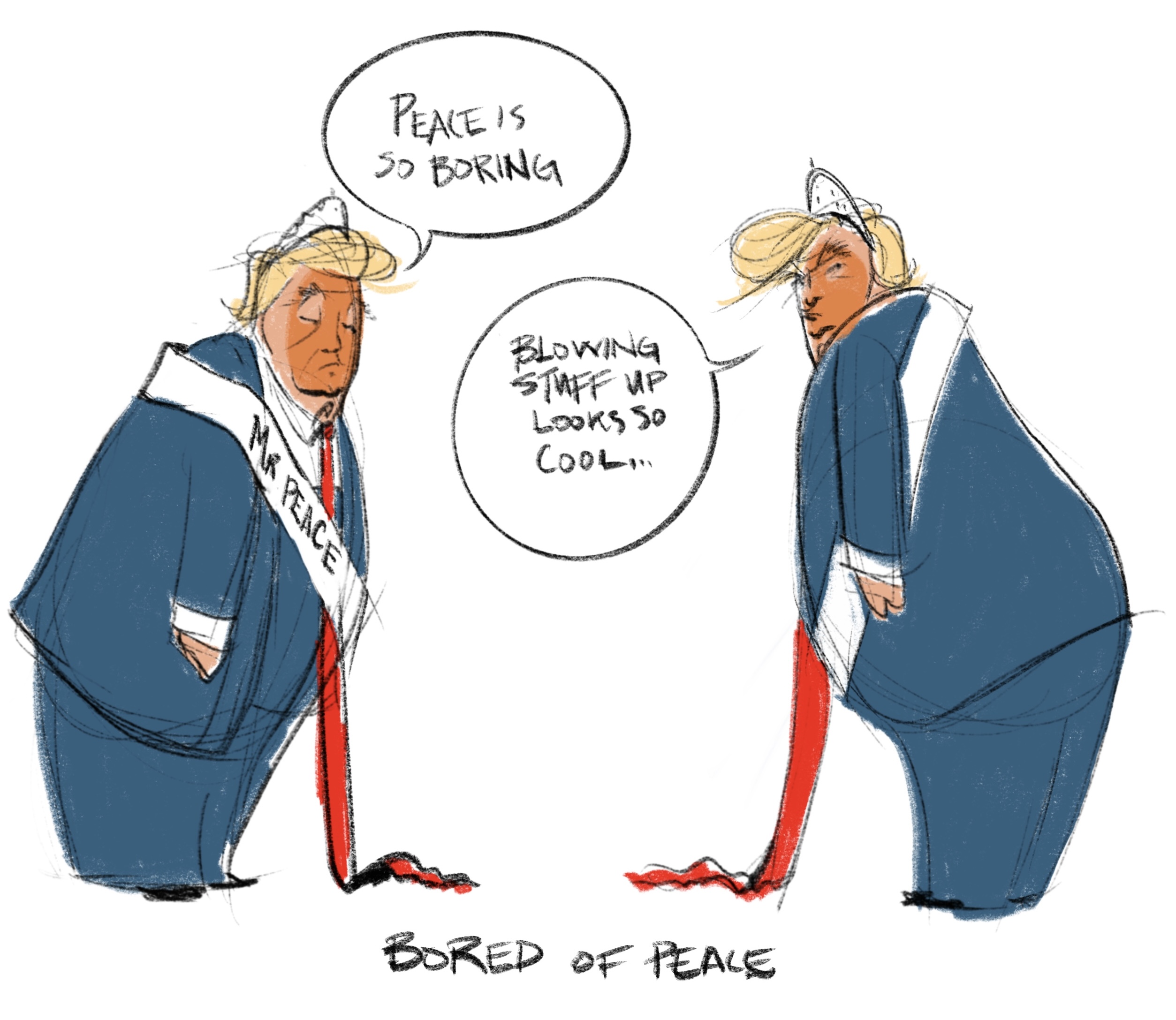 Like any rational person, I’m feeling a lot of stress from the cacophony of crises we find ourselves bombarded with this year. Many of these crises stem from or are embodied by one man. A single idiot has caused more harm in a year than a half dozen caused in fifty. I will not name him, as the existence of his name on yet another page only perpetuates his presence. How do you gain power over the powerful? You make them small and silly. That’s what cartoons are for. So here is my closure. My control. My anger. My spite. My spit. My venom. Some silly drawings of an unserious “short-fingered vulgarian”. These drawings are my art. They are my therapy.